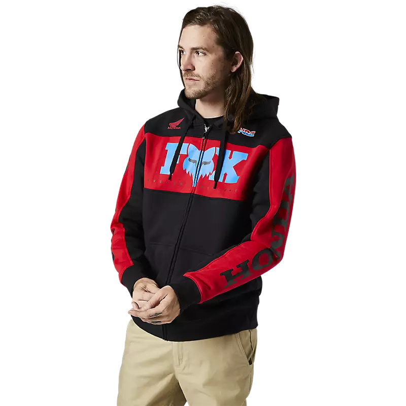 The Honda Zip Hoodie blends the best of both worlds—a zip-up jacket with a hoodie—then throws in some Honda love for fans of one of the most iconic brands in motocross. Made from heavyweight fleece, the feel is soft and cozy, while the temperature control is effortless, thanks to the zipper. Wear it to the track, wear it to a BBQ, wear it anywhere—it’s that versatile. A definite must-have for fans who love it when Fox and Honda get together.
